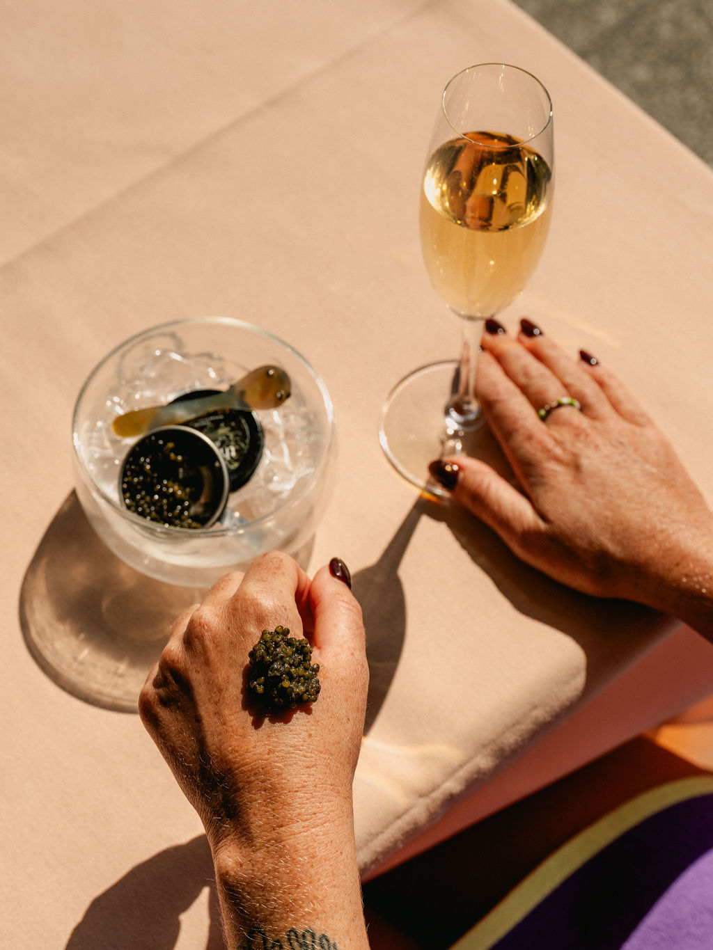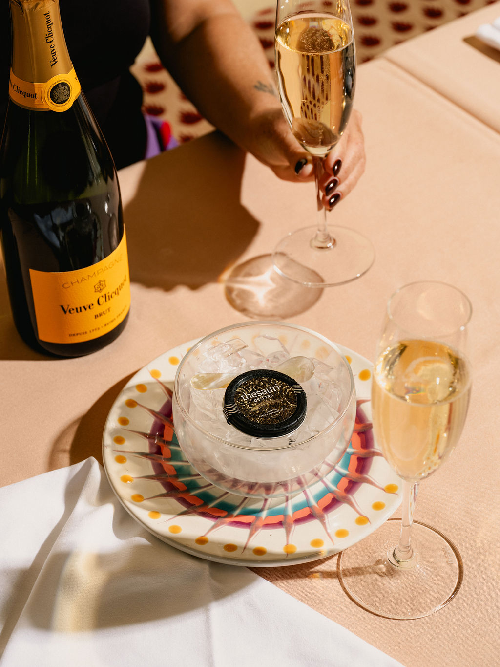 Bump of caviar & glass of Veuve Clicquot- $25pp